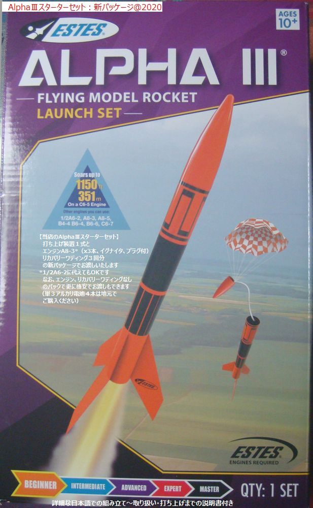 | 1427(新) | スターターセット:新パケージ:アルファⅢキット*/alphaⅢ starter kit-351m 定番の組み立てキット,打上装置1式 (日本語取説付)JARエンジン添付 |
